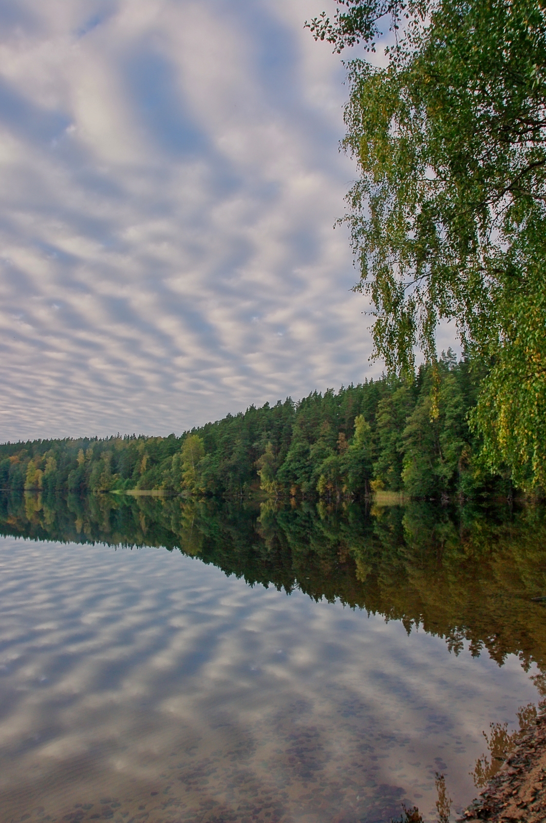 Calm Lake Uljaste with Reflective Cloudy Sky
